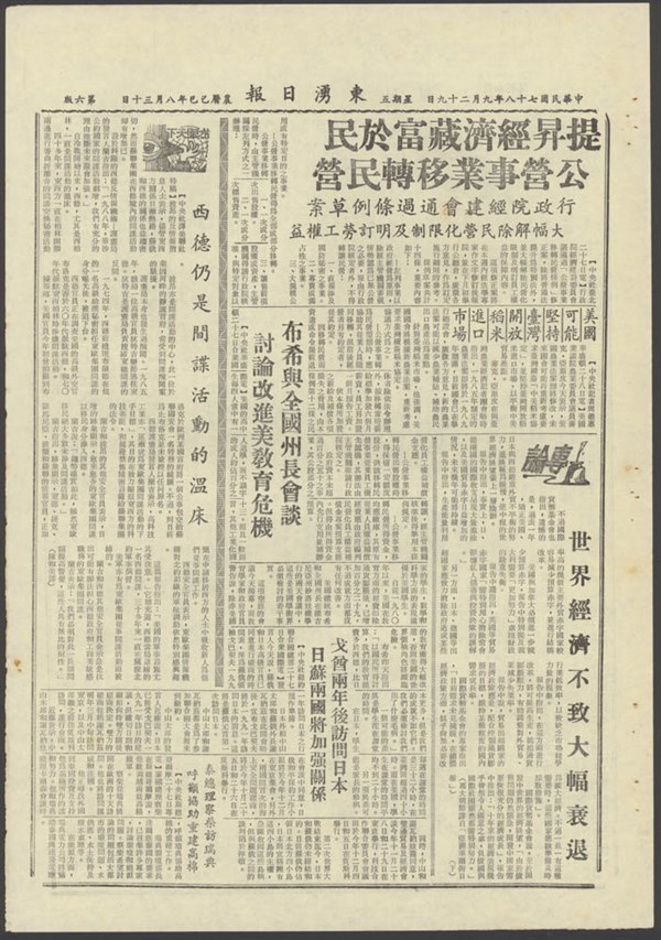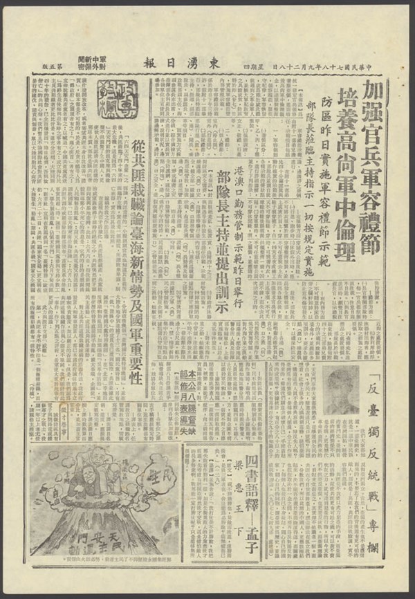 中華民國78年9月30日東湧日報第一一五O三期第一版 -