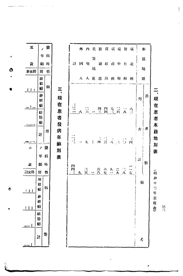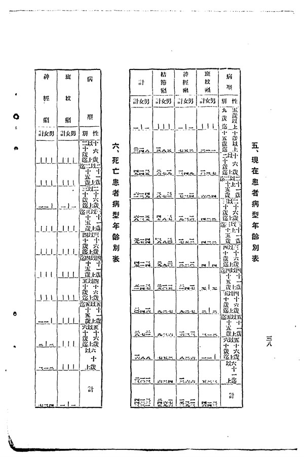1937年樂生院患者病型年齡別表 -