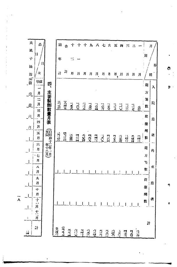1937年樂生院主要製劑數量月表 -