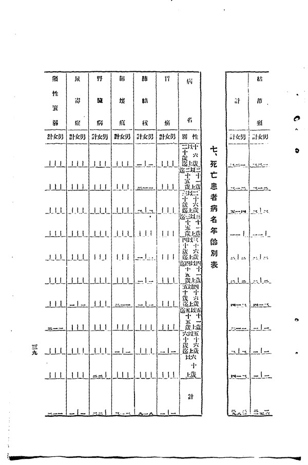 1937年樂生院死亡患者病名年齡別表 -