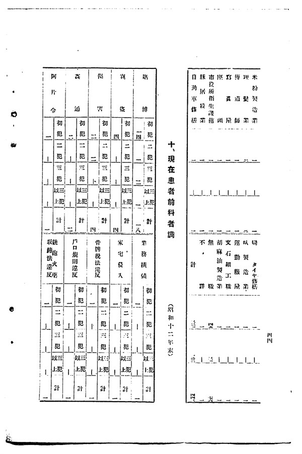 1937年樂生院患者的前科者統計 -