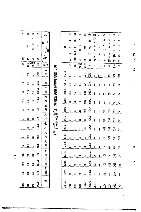 1937年樂生院繃帶材料消費量調查表 -