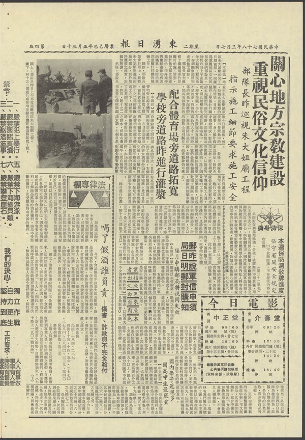 中華民國78年3月7日東湧日報第一一二九六期第四版 -