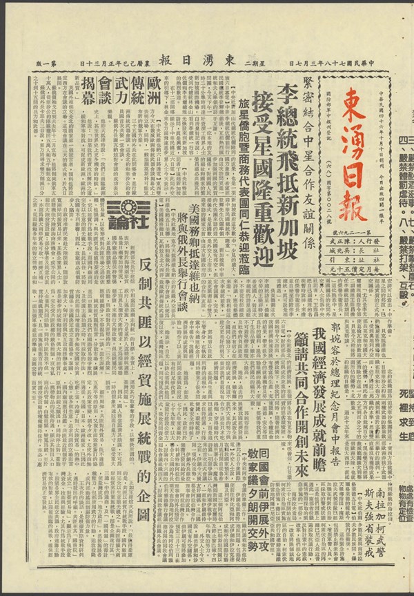 中華民國78年3月7日東湧日報第一一二九六期第一版 -