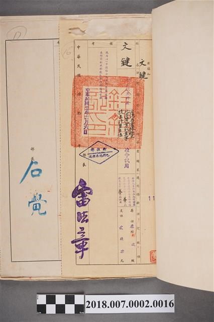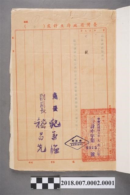 文鍵任臺中市立第二中學主計室主任之臺灣省政府主計處令 -