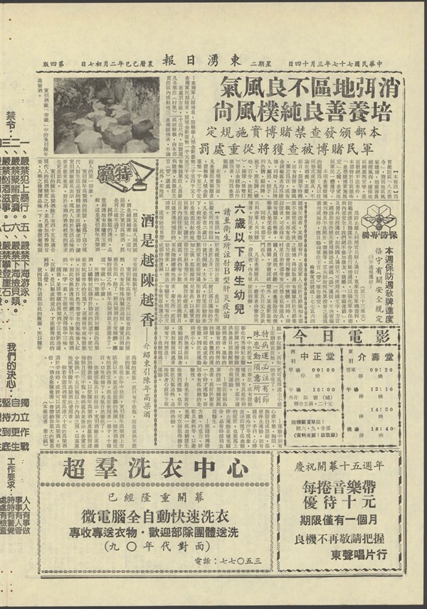 中華民國78年3月14日東湧日報第一一三O三期第四版