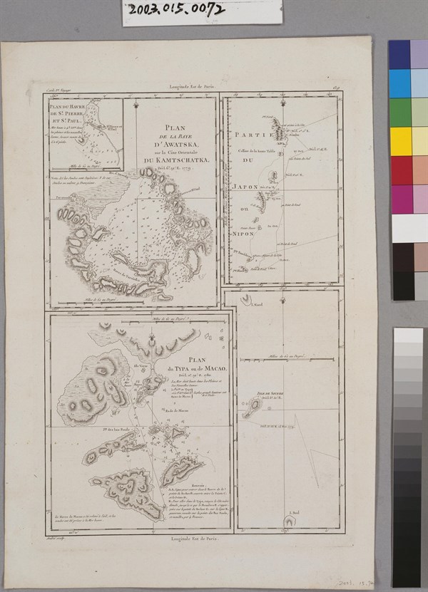 Rigobert Bonne〈堪察加東海岸〉與〈澳門〉與〈日本局部地區〉與〈硫磺島〉等海圖4幅 -