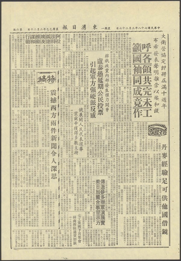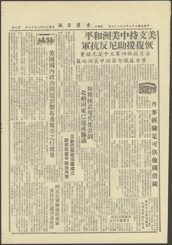 中華民國78年3月26日東湧日報第一一三一五期第六版 -