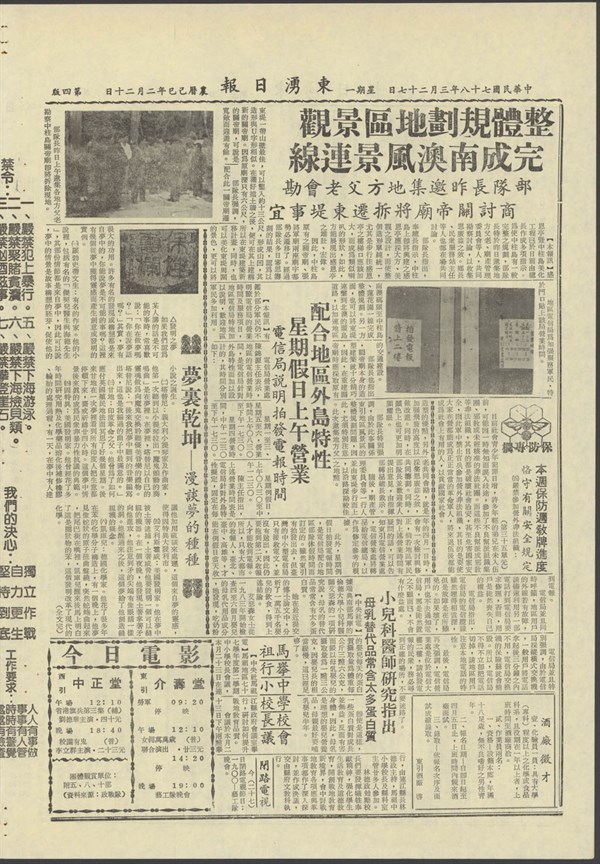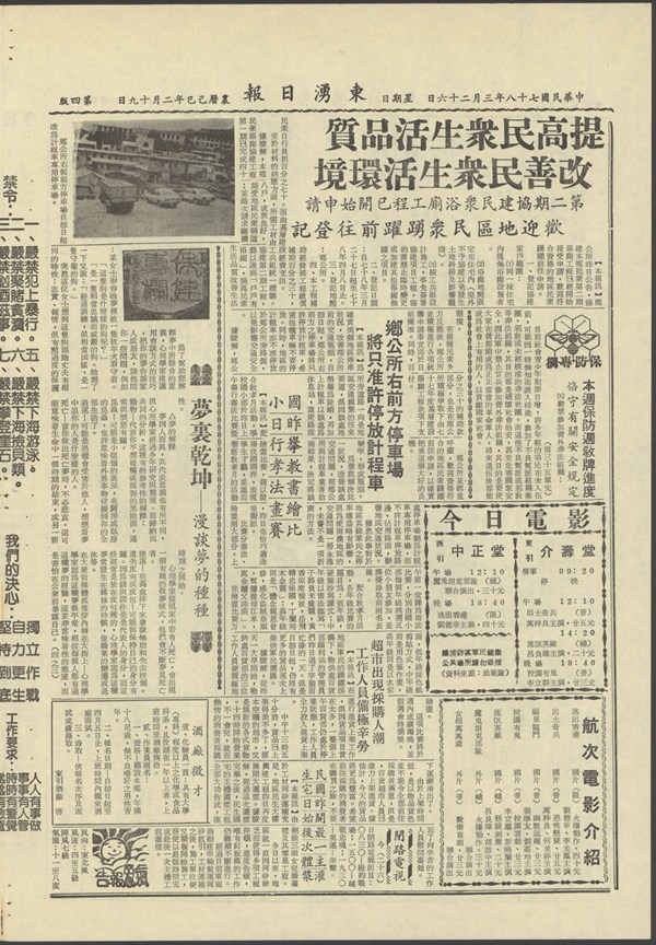 中華民國78年3月26日東湧日報第一一三一五期第四版 -