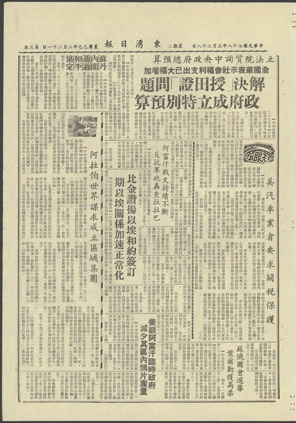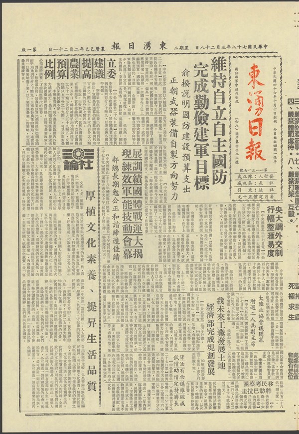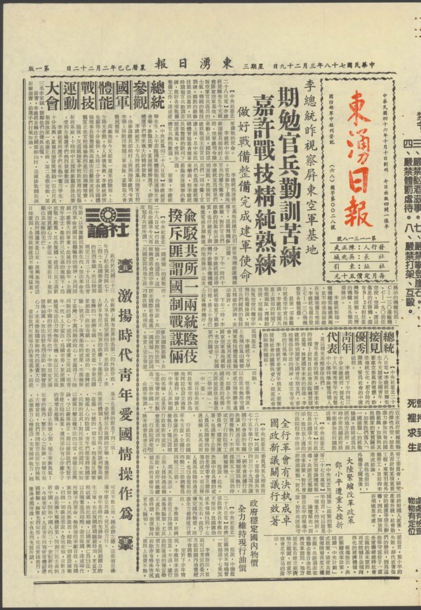 中華民國78年3月29日東湧日報第一一三一八期第一版 -