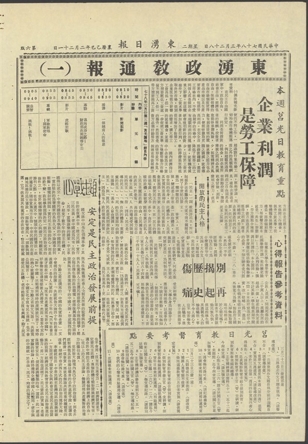 中華民國78年3月28日東湧日報第一一三一七期第六版 -