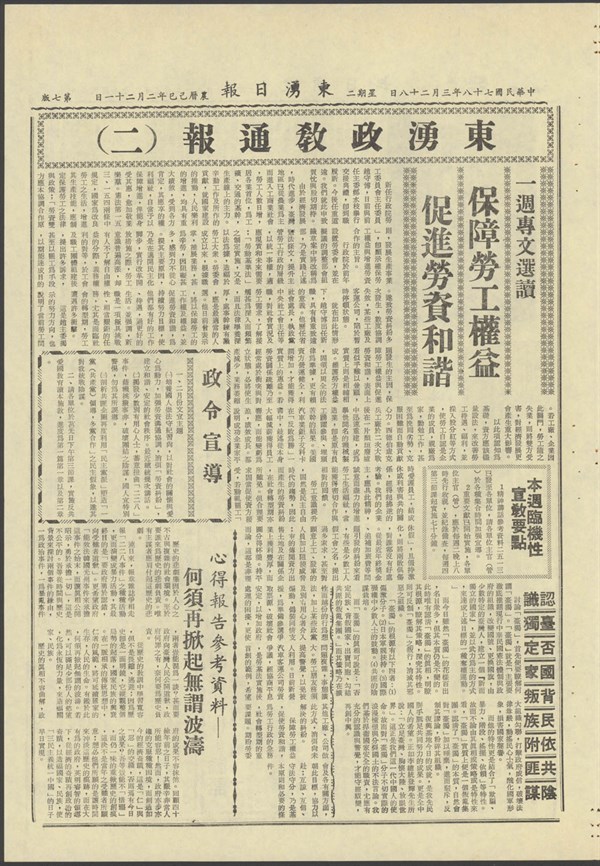中華民國78年3月28日東湧日報第一一三一七期第七版 -