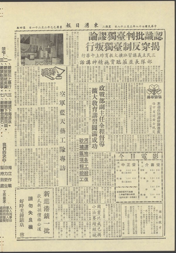 中華民國78年3月29日東湧日報第一一三一八期第四版