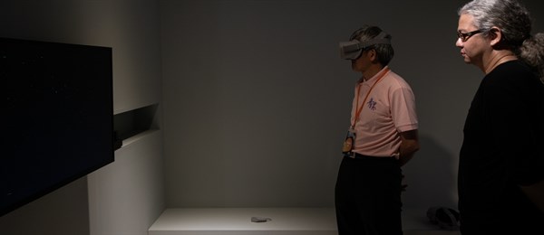 2019年4月24日至5月5日臺灣文博會工藝館,茶3.1415展場展覽VR體驗區葉俊慶助理教授指導透過VR影片瀏覽 -