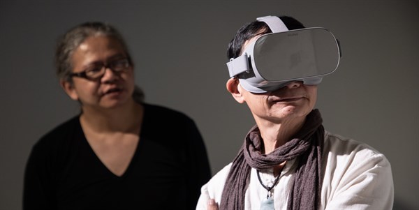 2019年4月24日臺灣文博會工藝館,茶3.1415展場臺灣大學園藝暨景觀學系陳右人教授、游葉俊慶助理教授指導參與VR體驗 -