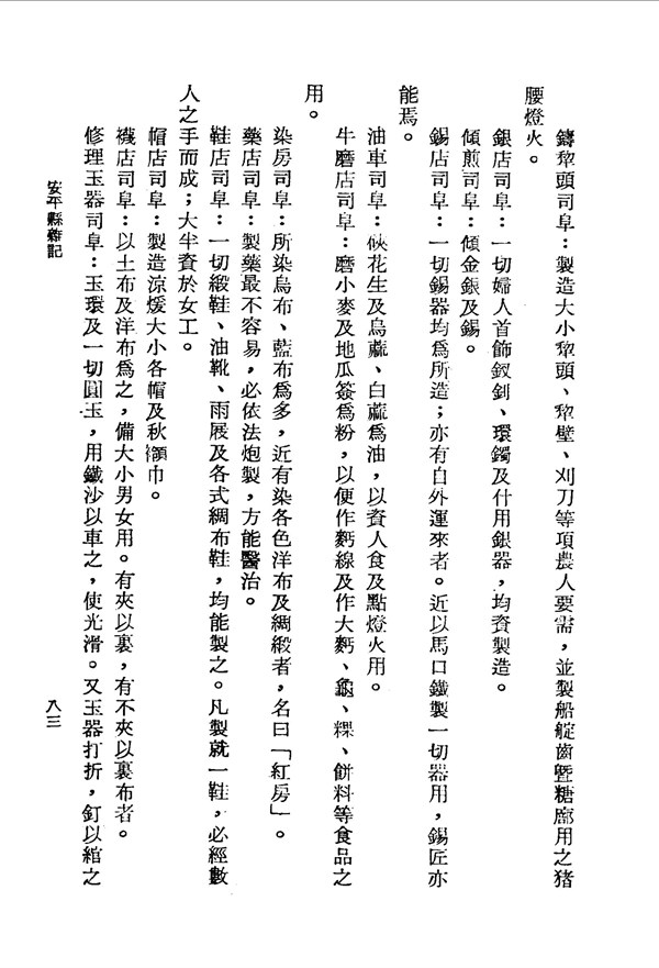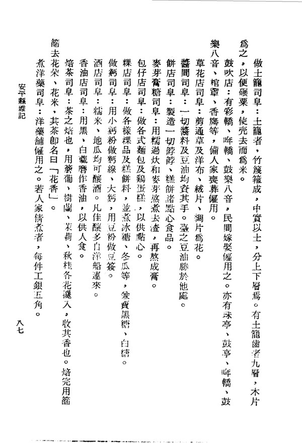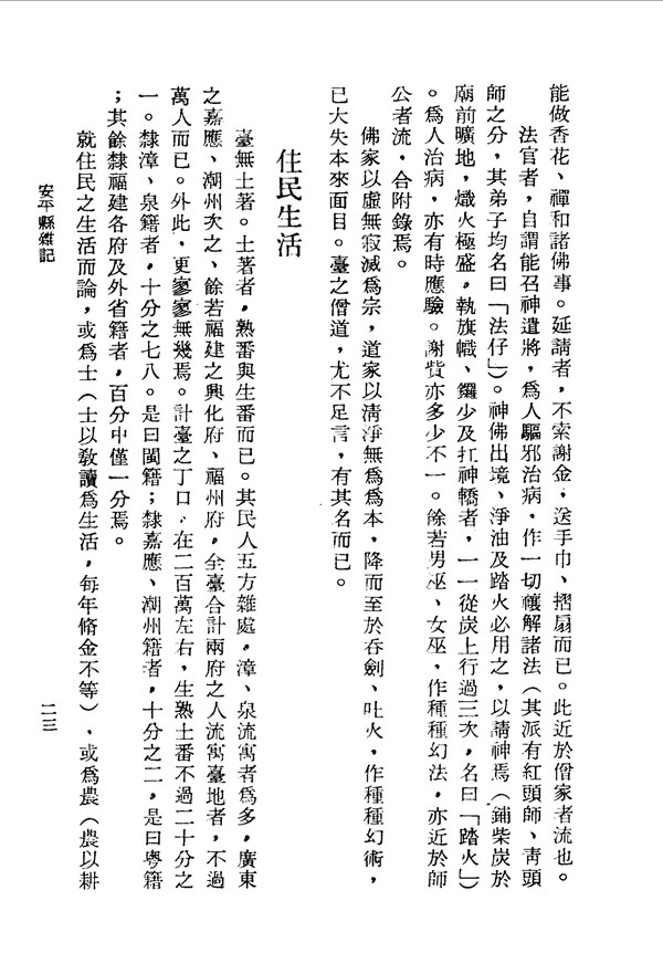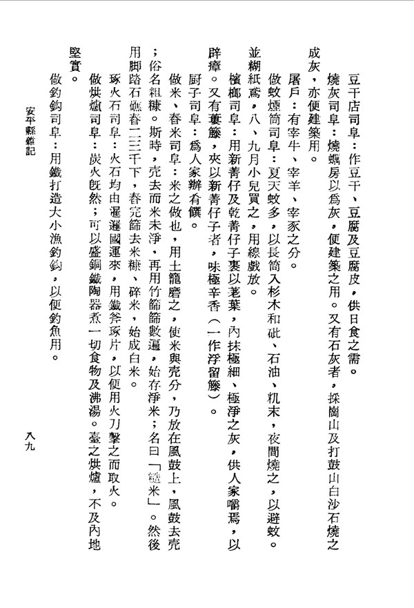 住民莫不各執一業以謀其生 安平縣雜記 台灣文獻史料叢刊 -