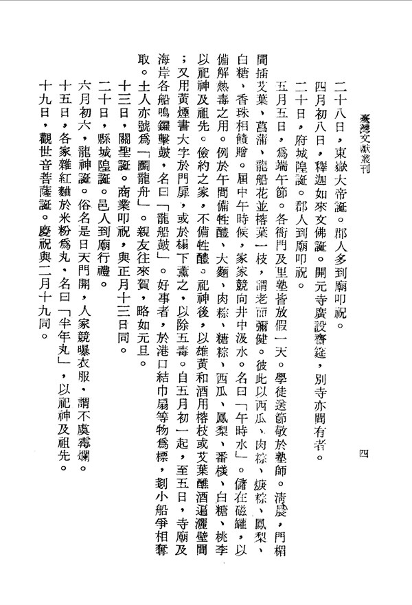 端午節習俗,汲午時水解熱毒 安平縣雜記 台灣文獻史料叢刊 -
