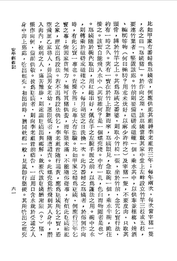 尫姨禳解或請祀,要燒酒、檳榔 安平縣雜記 台灣文獻史料叢刊 -