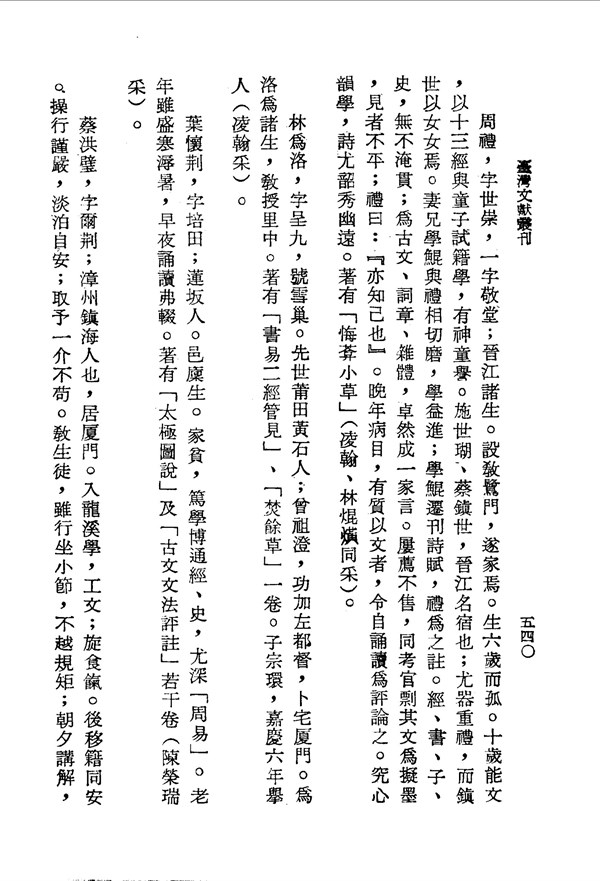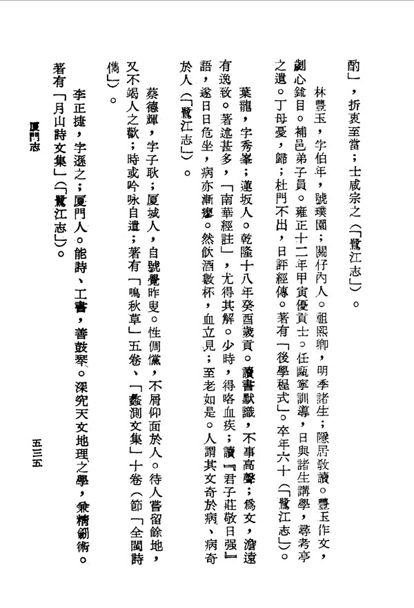 周禮晚年生眼病,令自誦讀來評論 廈門志卷十三 台灣文獻史料叢刊 -