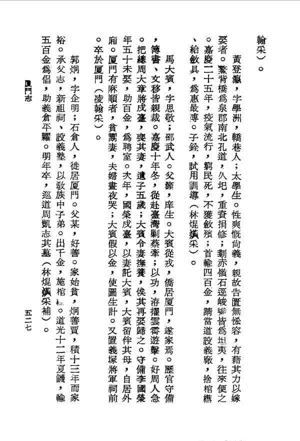黃登瀛於傳染病流行時,施棺協助處理後事 廈門志卷十三 台灣文獻史料叢刊 -