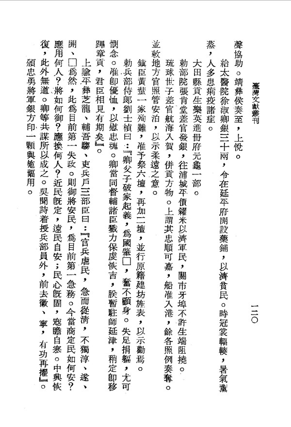 仲山出錢買藥來救濟百姓 臺灣通史卷三十五 台灣文獻史料叢刊 -