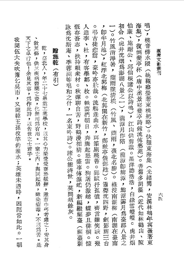 施乾築愛愛寮於艋舺,作為乞丐救濟收容之處 劍花室詩集 台灣文獻史料叢刊 -
