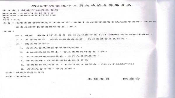 新北市礦業退休人員交流協會籌備 -