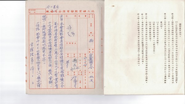 瑞三鑛業公司產業工會對永安煤礦捐助紀錄 -