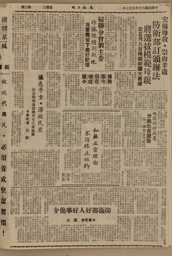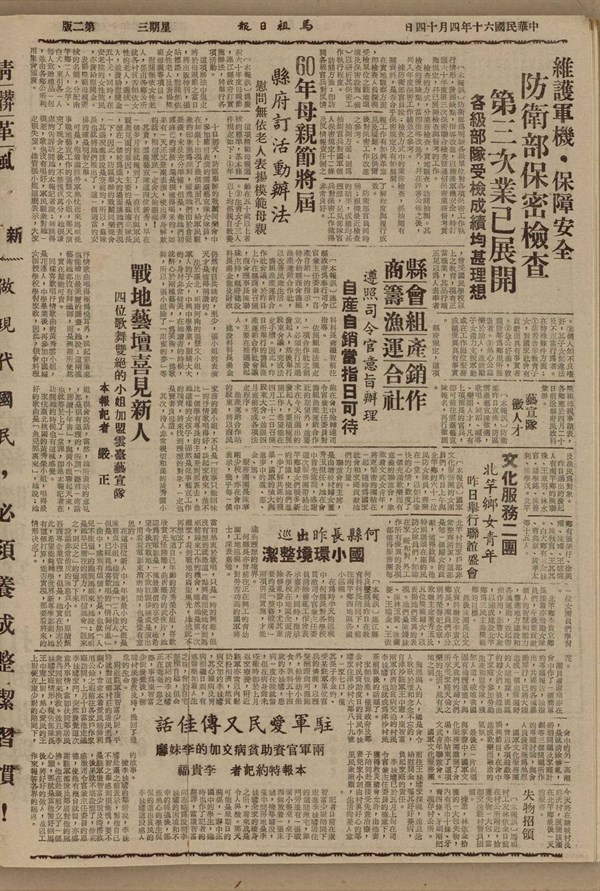 馬祖防衛部頒布選拔模範母親辦法-馬祖日報 -