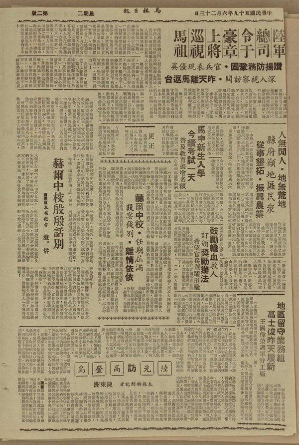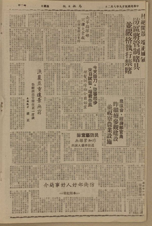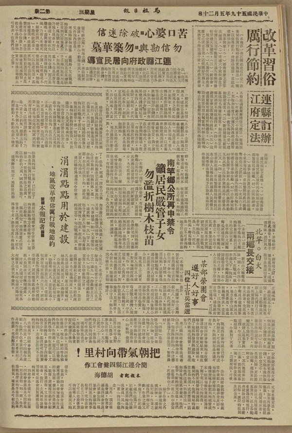 連江縣政府頒布改革習俗厲行戰時節約實施辦法-馬祖日報 -