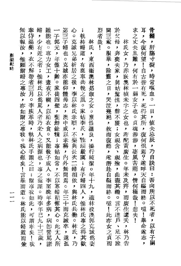 李氏,其夫與子相繼逝世,哀痛不已,時常嘔血 澎湖紀略卷之五 台灣文獻史料叢刊 -