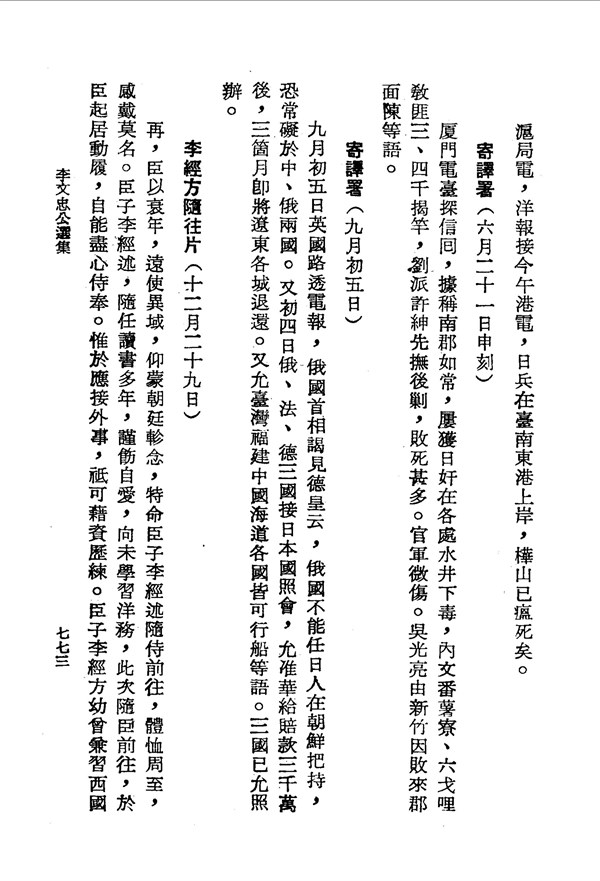 李經方積勞成疾 李文忠公選集第五冊 台灣文獻史料叢刊 -