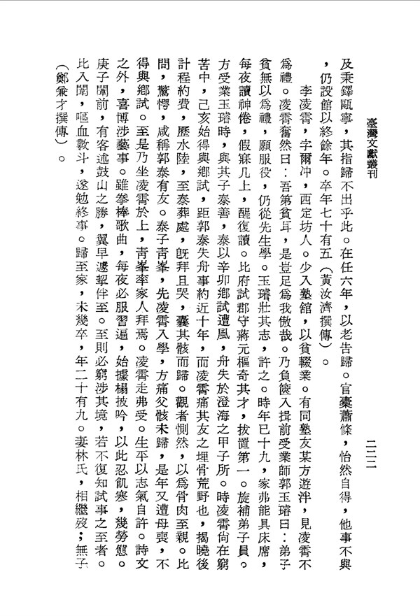 李凌霄考試中吐血,回家後身亡 續修臺灣縣志卷三 台灣文獻史料叢刊 -