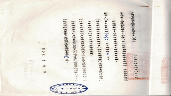 台灣省礦業產業工會聯合會-民國七六年「五一」勞動節集中表揚 -