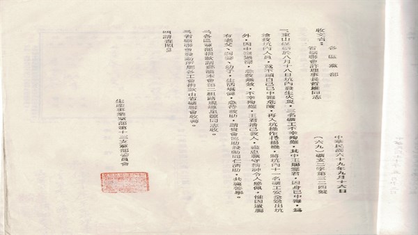 生產事業黨部第十三支黨部委員會-東山煤礦火災救助 -