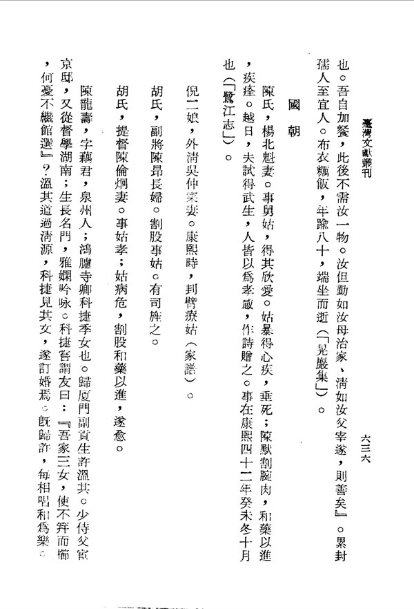 胡氏割股以事姑 廈門志卷十四 台灣文獻史料叢刊 -