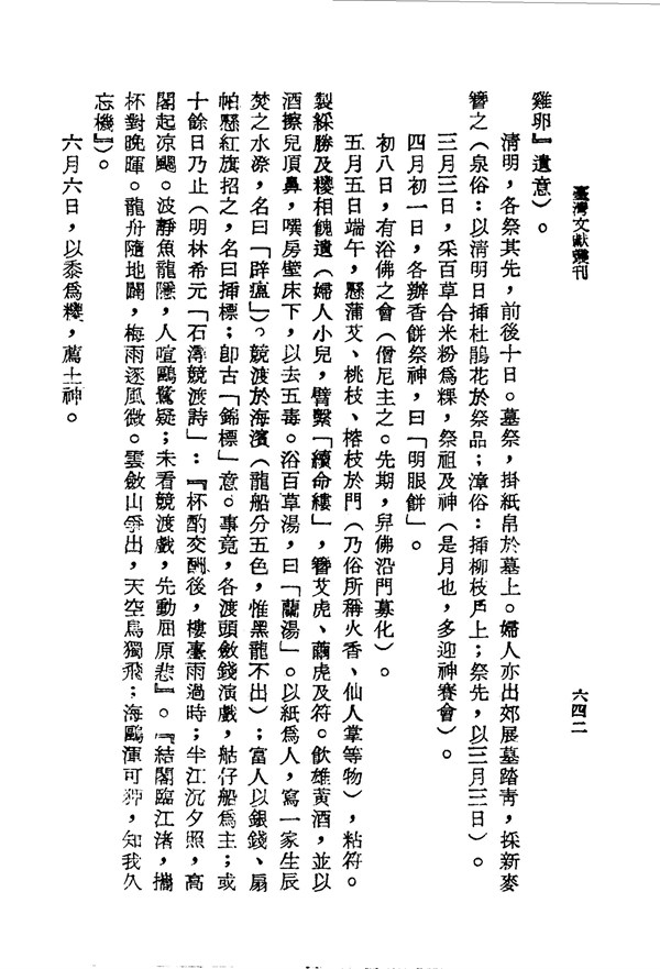 端午節懸蒲艾、飲雄黃酒等的習俗 廈門志卷十五 台灣文獻史料叢刊 -