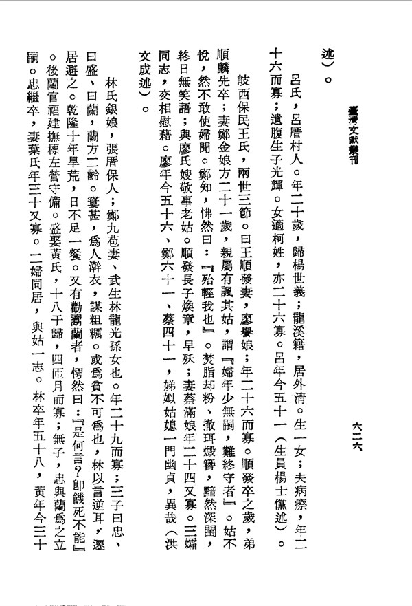 呂氏夫病痨,不久便守寡 廈門志卷十四 台灣文獻史料叢刊 -