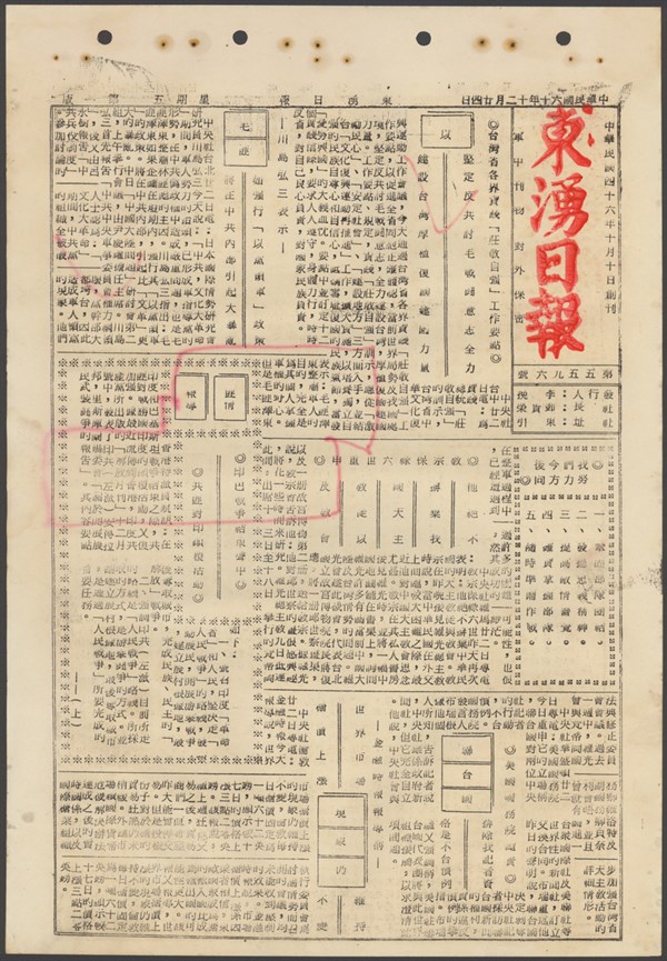 中華民國61年2月22日東湧日報第五六五一期第一版 -