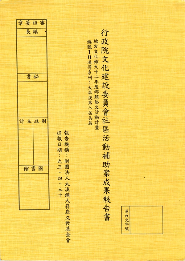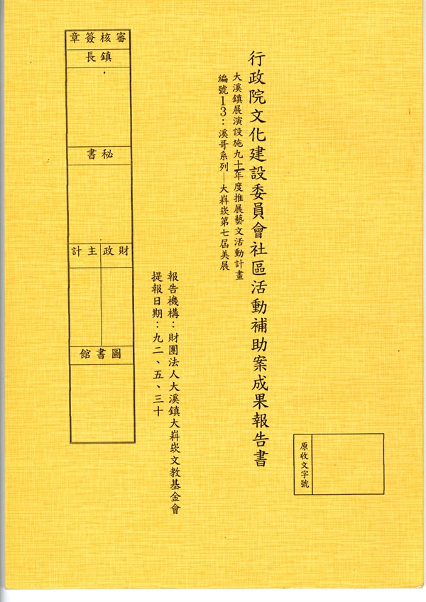 行政院文化建設委員會社區活動補助案成果報告書大溪鎮展演設施九十一年度推展藝文活動計畫編號13:溪哥系列─大嵙崁第七屆美展 -