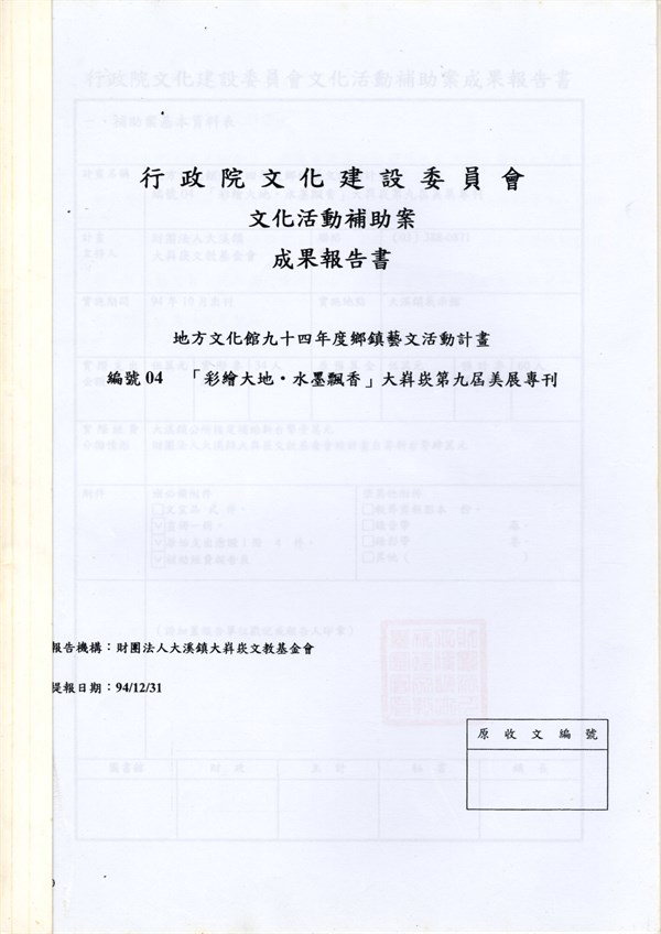 行政院文化建設委員會文化活動補助案成果報告書 地方文化館九十四年度鄉鎮藝文活動計畫 編號04 「彩繪大地‧水墨飄香」大嵙崁第九屆美展專刊 -