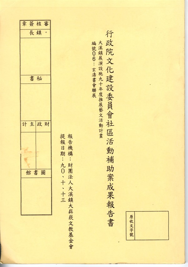 行政院文化建設委員會社區活動補助案成果報告書大溪鎮展演設施九十年度推展藝文活動計畫編號06:玄濤書會聯展 -