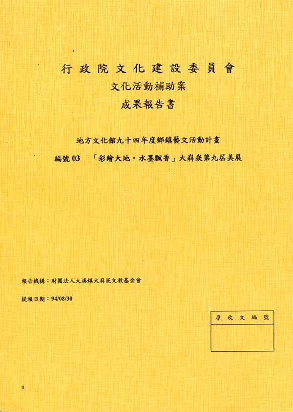 行政院文化建設委員會文化活動補助案成果報告書 地方文化館九十四年度鄉鎮藝文活動計畫 編號03 「彩繪大地.水墨飄香」大嵙崁第九屆美展 -