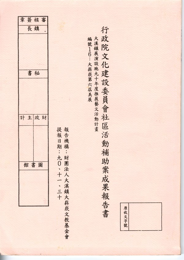 行政院文化建設委員會社區活動補助案成果報告書大溪鎮展演設施九十年度推展藝文活動計畫編號16:大嵙崁第六屆美展 -