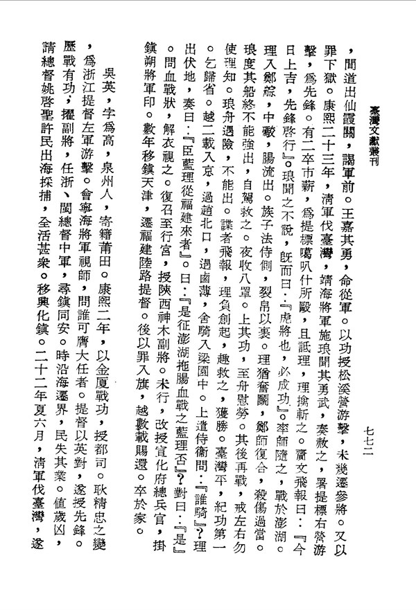 將帥感染瘴癘而死 臺灣通史卷三十 台灣文獻史料叢刊 -