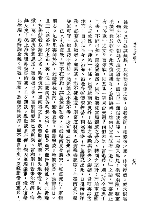 法人目的在緩戰不在求和,但卻因為瘟疫流行、軍隊無鬥志而求和 左文襄公奏牘卷一 台灣文獻史料叢刊 -