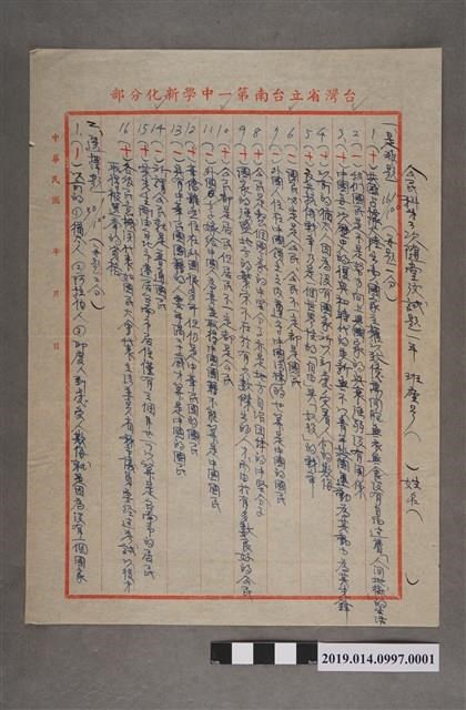 臺南縣立新化初中一年級公民科第三次隨堂考試命題試卷 -