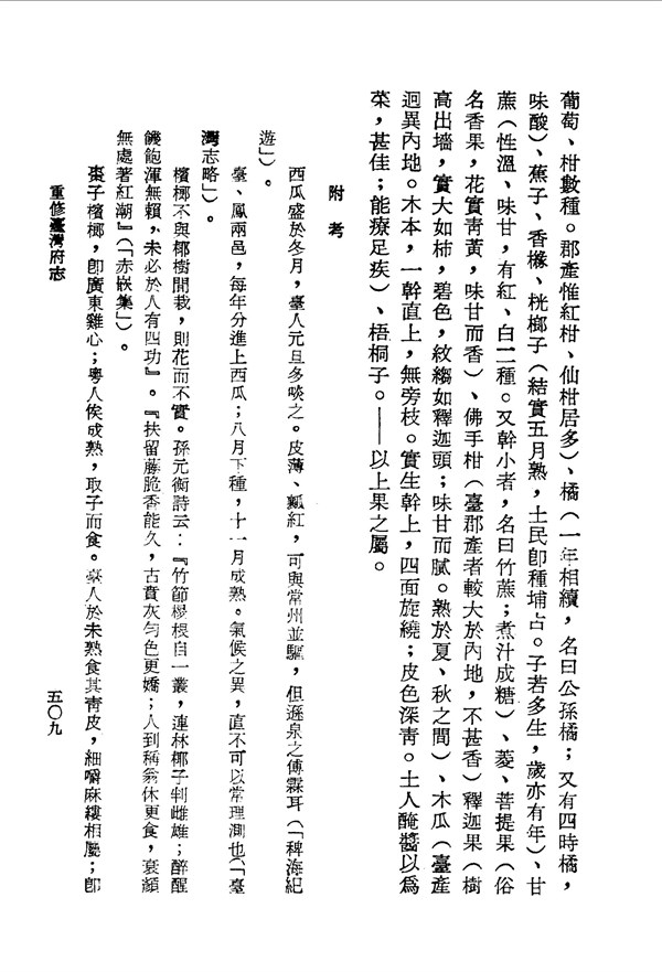 木瓜能療足疾 重修福建臺灣府志卷六 台灣文獻史料叢刊 -