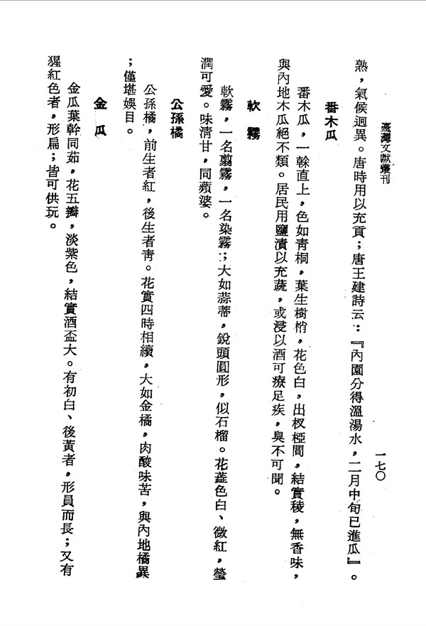 番木瓜形態、能食用或入藥 小琉球漫誌卷五 台灣文獻史料叢刊 -