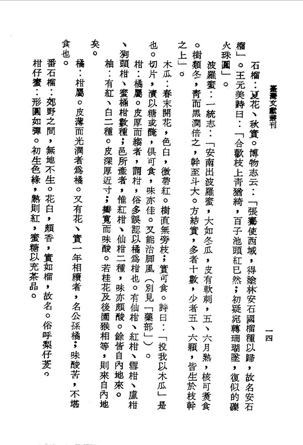 木瓜實可食,味亦佳,又能治腳風 臺灣縣志 台灣文獻史料叢刊 -